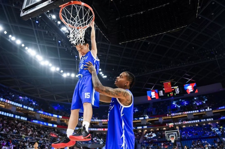 喻言、玛丽亚·亚瑞唐多分别献上活力唱跳与深情演唱;扣篮环节更是精彩纷呈,“拖地哥”陈登星伪装登场后惊艳暴扣,引发阵阵喝彩。